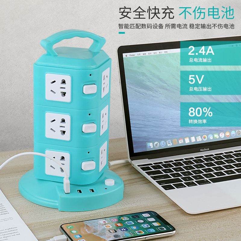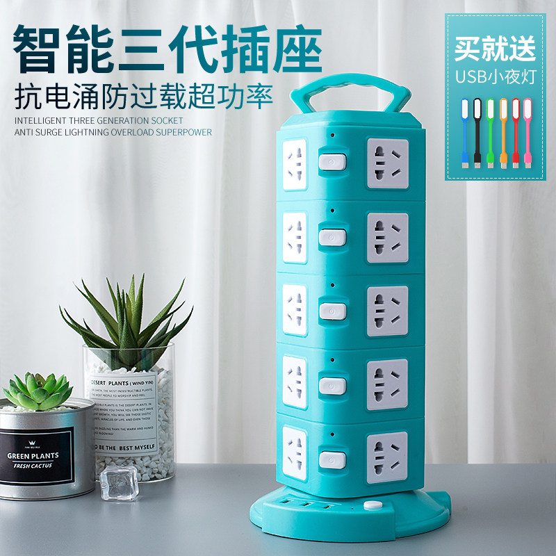 Multifunction plug-in tower-shaped anti-overload socket stand-type inserts usb plugboard porous home trailers