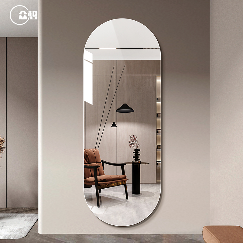 Crowdwant light extravagant oval no-frame full body mirror wall-mounted full-body mirror home patch wall high-definition anti-explosion mirror hanging wall
