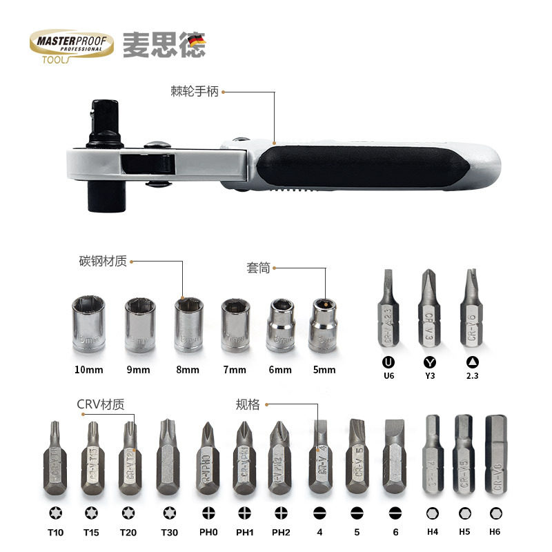 Germany Maiside screwdriver set tool Small ratchet sleeve Thin wall screwdriver head Multi-function batch head screwdriver