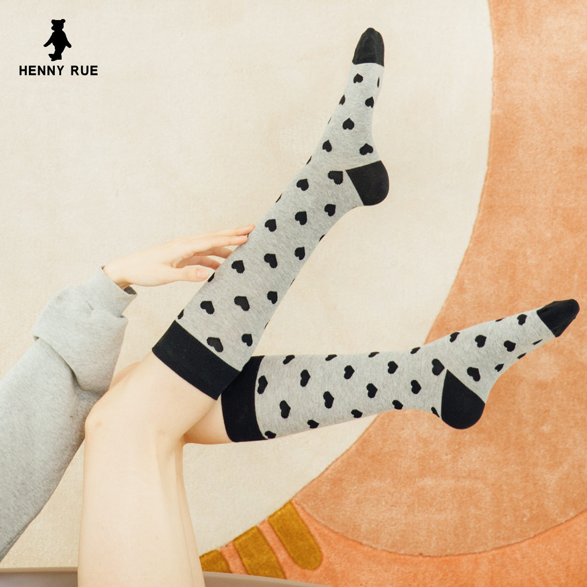 HENNY Rue SMALL BEAR 21 YEARS NEW COTTON PEACH HEART HEAPS Cylinder Calf Socks 19177
