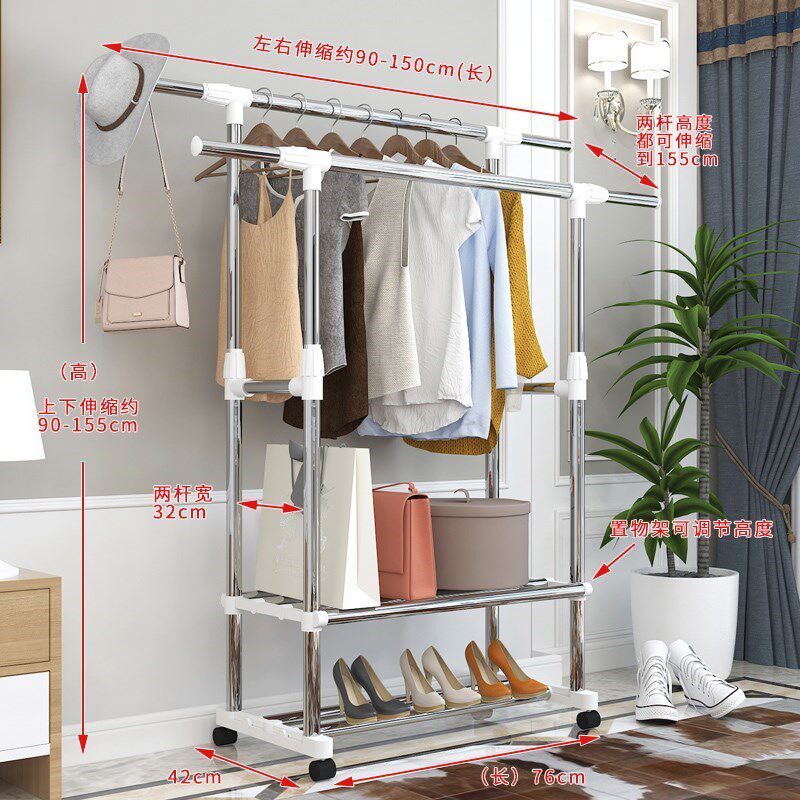 Small coarse-pipe-set ground clothes hanger sub-floor plus coarse thickened telescopic lever single-dry home bedroom with rollers