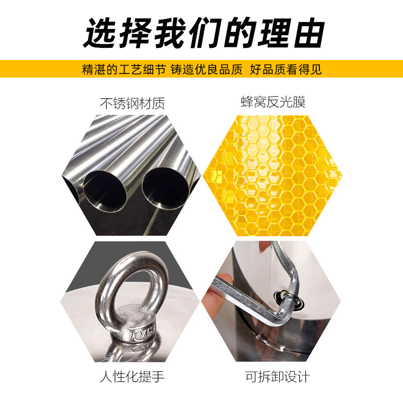 304 stainless steel warning Reflective column fixed movable buried road pile parking warning column stainless steel anti-collision column