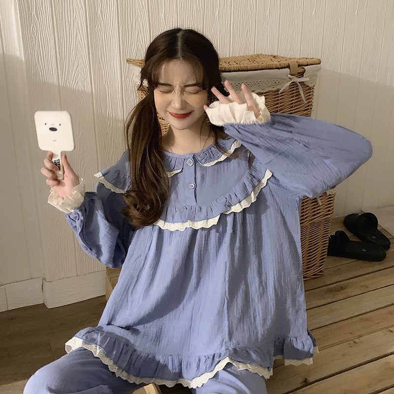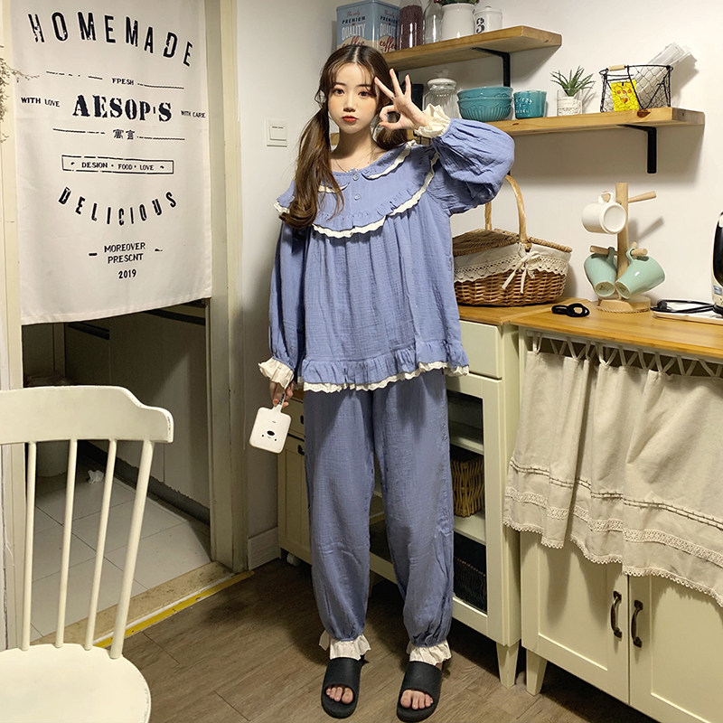 Spring new Korean version of sweet and cute girlfriends wear pajamas outside home clothes suit women's casual and comfortable two-piece set