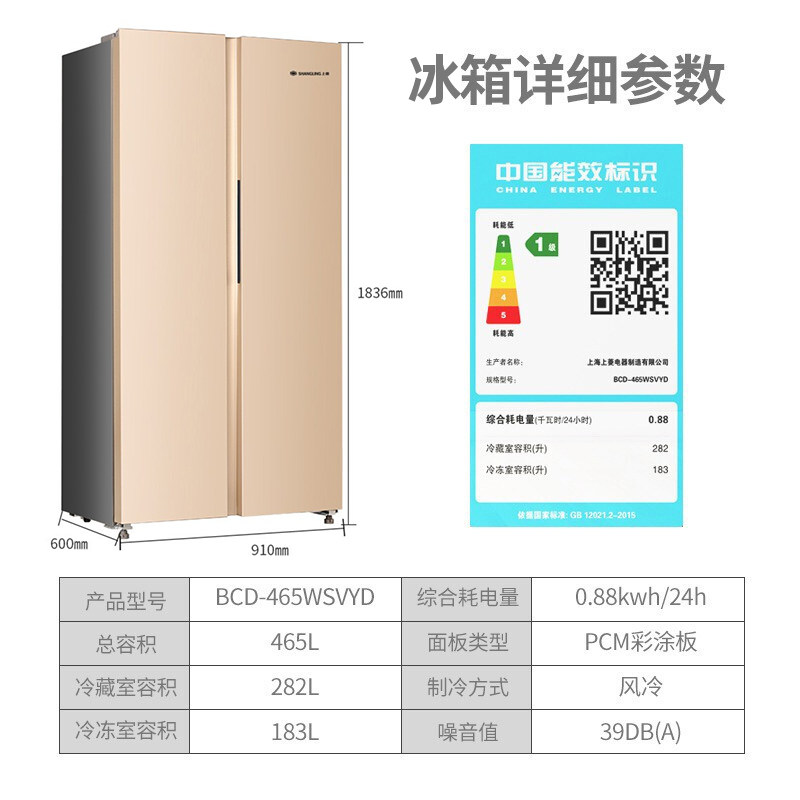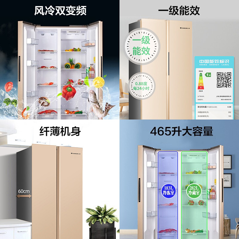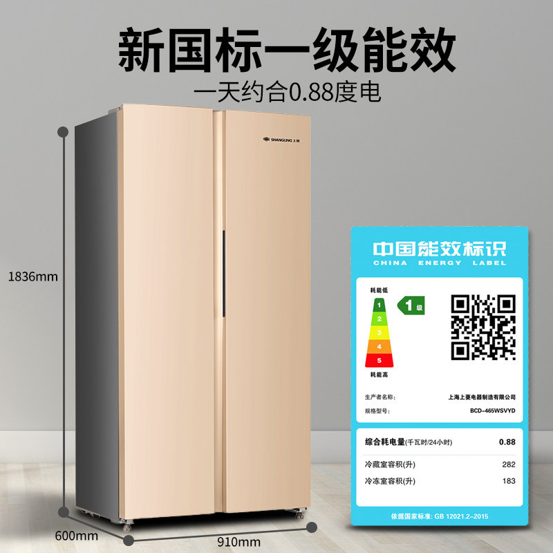 Shangling 465 liters double door refrigerator open door household air-cooled frost-free first-class energy efficiency double frequency conversion refrigerator
