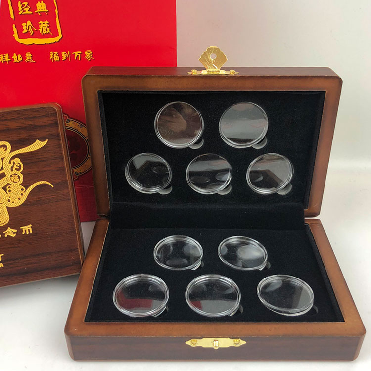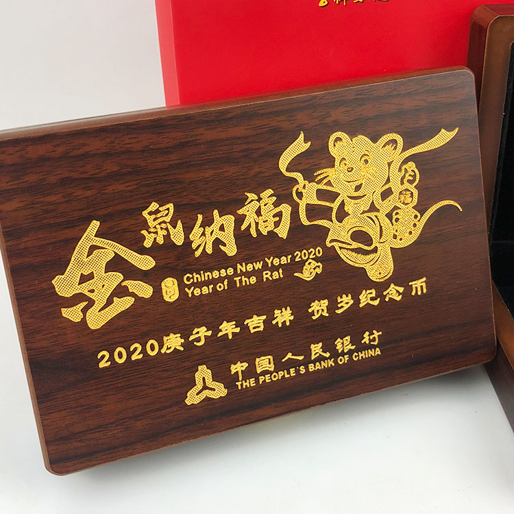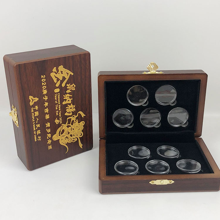 Rat Year Zodiac Commemorative Coin Collection Box 27mm Ten Yuan Rat Coin Protection Box 2020 New Year Coin Coin Coin Wooden Box