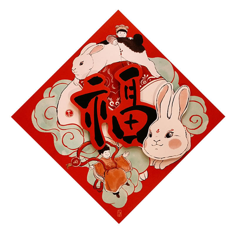 Antithetical couplet three-dimensional door stickers New Year's creative Spring Festival couplets Fu word stickers housewarming moving Spring Festival Chinese New Year Year of the Rabbit 2023 new home