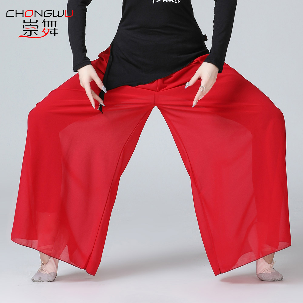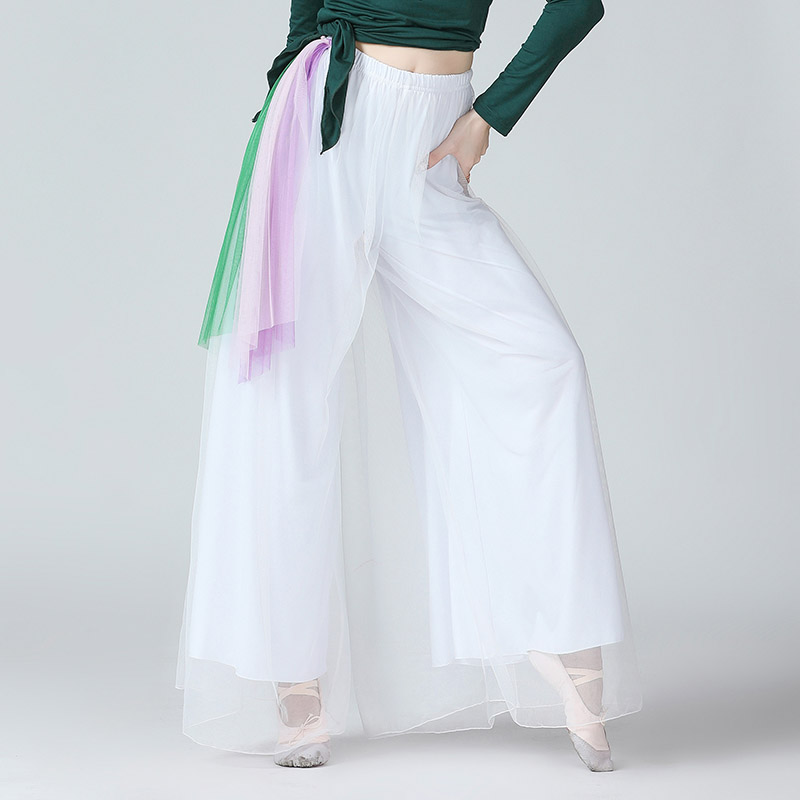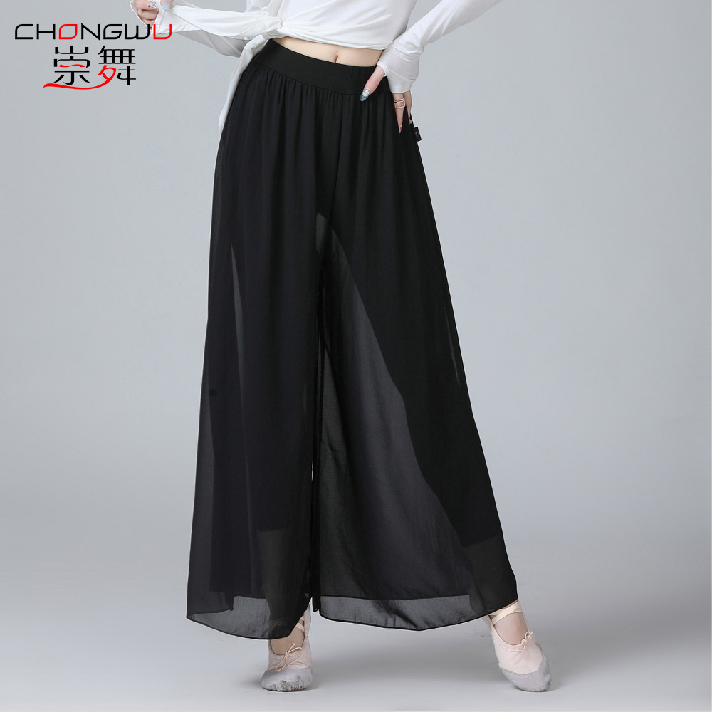 Modern dance high-waisted gauze pants classical dance white loose double-layer wide pants shape dance practice pants square dance Joker