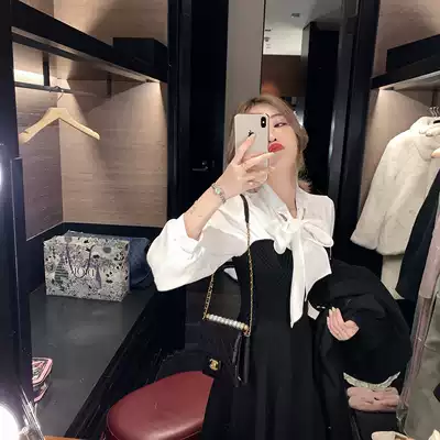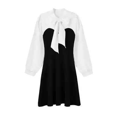 ByYou summer bow fake two-piece stitching black inner knitted dress shows thin waist base skirt