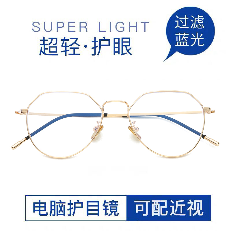 Large s Tongan anti-Blu-ray gold silk-glasses female myopia radiation protection flat eye frame flat mirror male