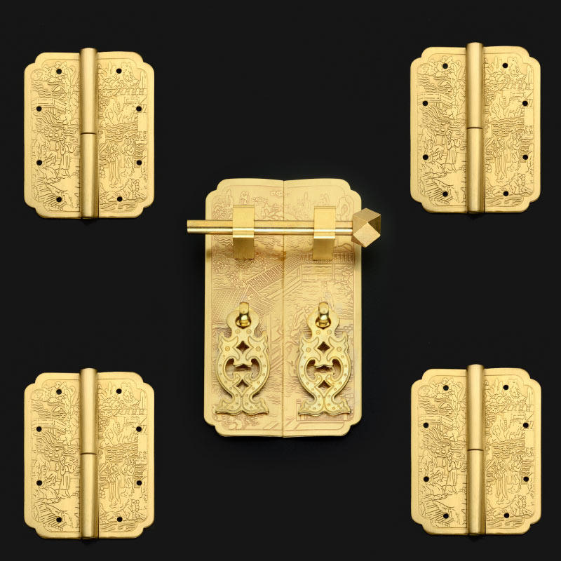 Chinese antique handle pure copper hinged wardrobe bookcase door handle cabinet mahogany furniture hardware copper accessories