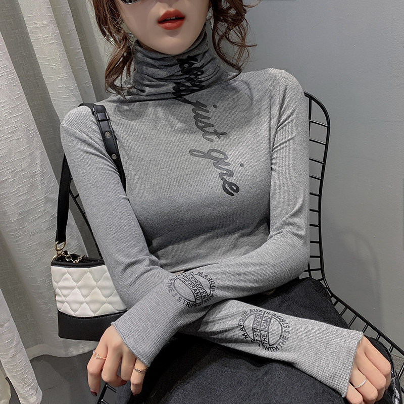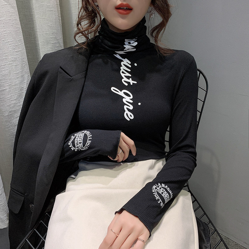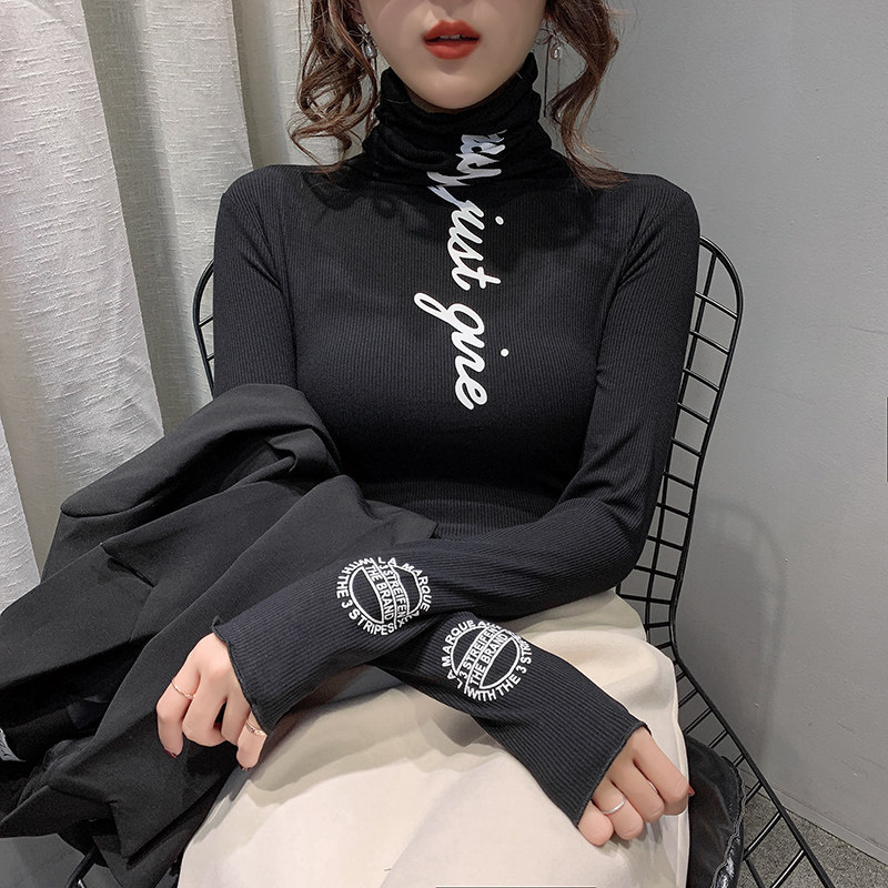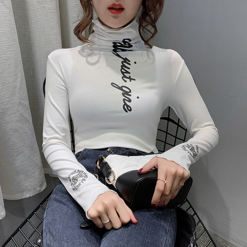 Pile Stack High Collar Bottom Jersey Woman Inside Lap 2019 Autumn Winter New Euro-Goods Foreign Blouse Blouse T-shirt With Long Sleeve T-Shirt