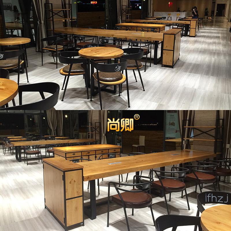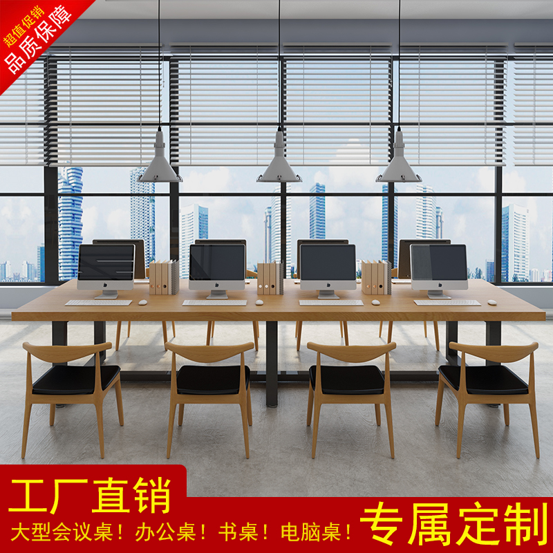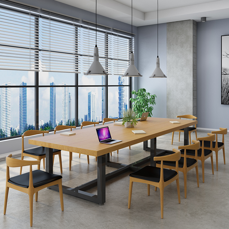 Loft solid wood conference table industrial wind large desk American long bar negotiation training table wrought iron office furniture