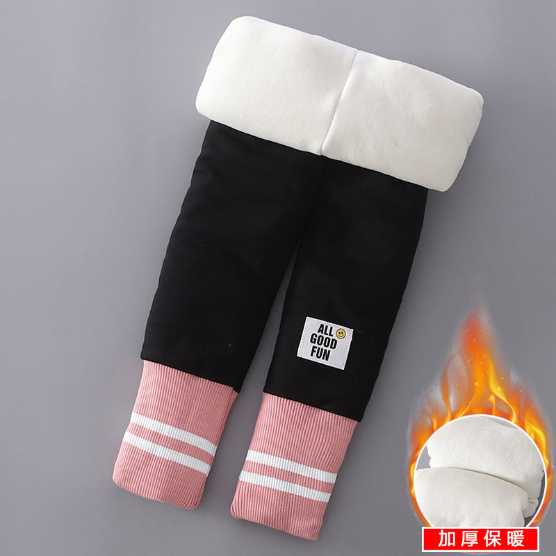 Girl Triple Layer Plus Suede Thickened Cotton Pants 2022 Winter New Children Warm Pants Inside Lap Pants Mid-Child Baby Clothing