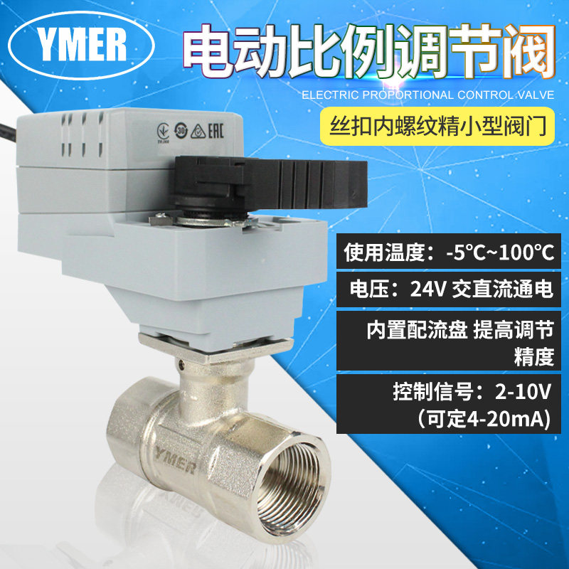 Electric proportional integral regulating valve thread buckle high pressure resistant ball valve fine small 24V analog brass water valve