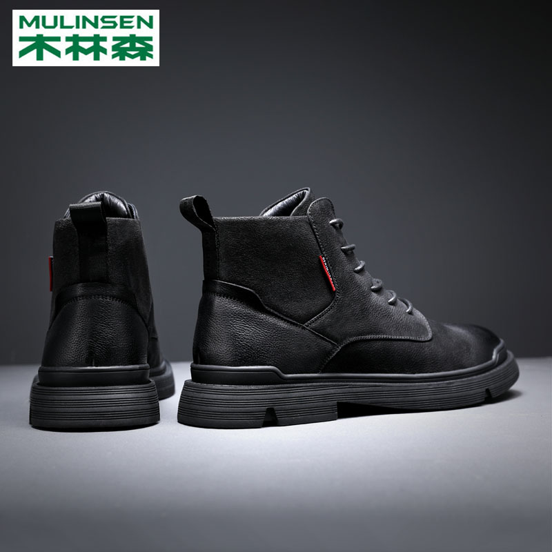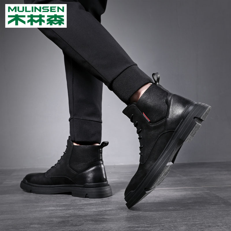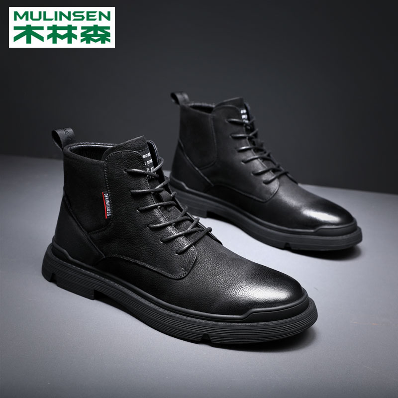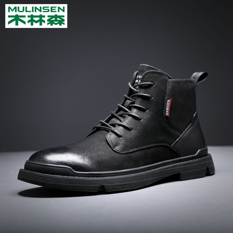 Mulinsen Martin boots men's high-end leather high tube men's Martin shoes full cowhide casual non-slip short boots leather boots