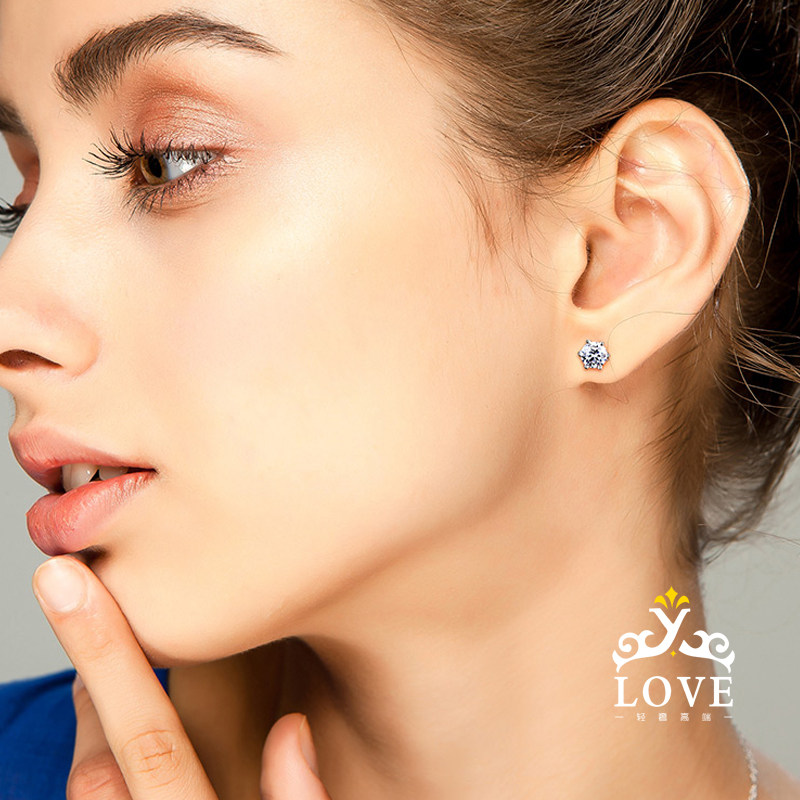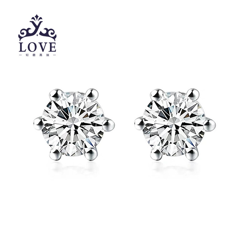 Platinum new single price warranty nail female moissanite PT950 classic six-claw white gold earrings earrings gift