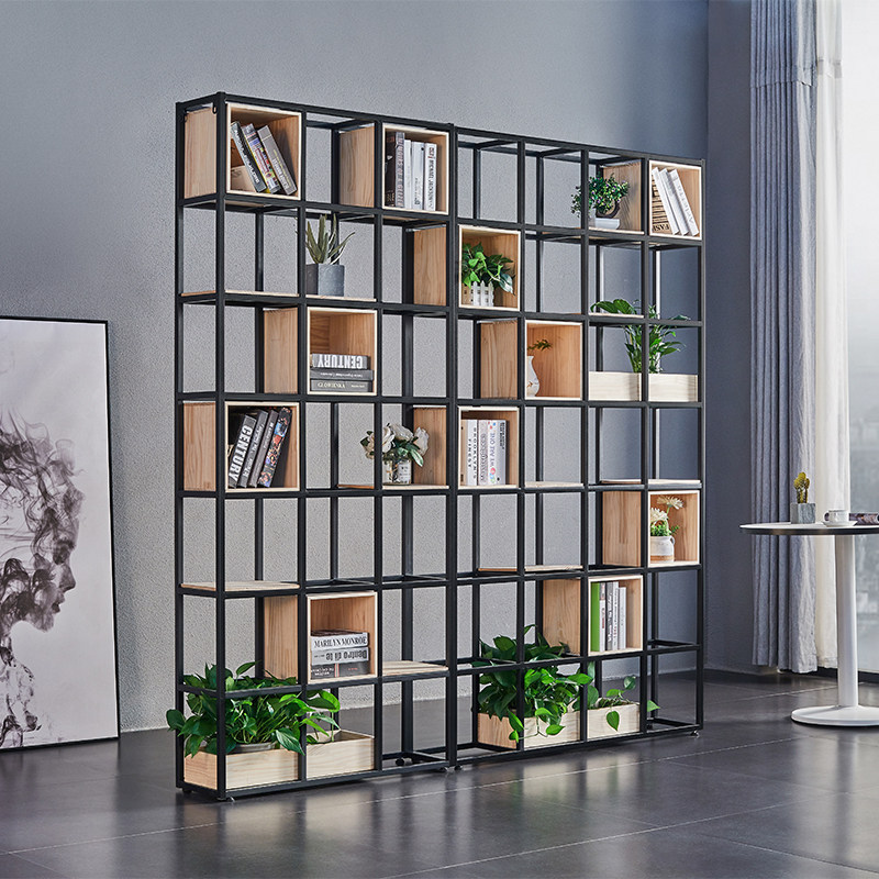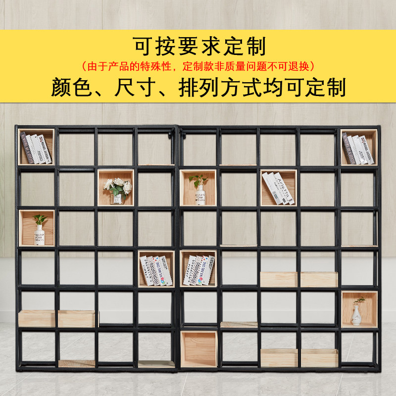 Partition Iron Art Screen Display Cabinet Industrial Wind Shelf Dining Hall Xuanguan Living Room Decoration Solid Wood Shelf Shelf Wall