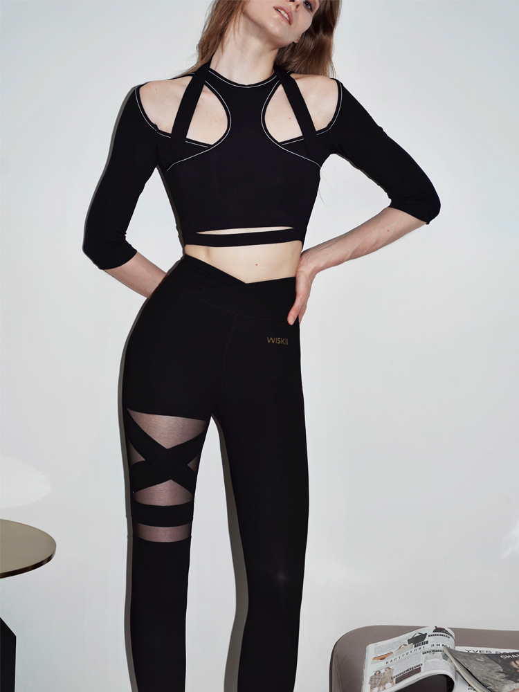 WISKII European and American tight yoga sports top backless lace slim short long-sleeved training clothes fitness clothes women