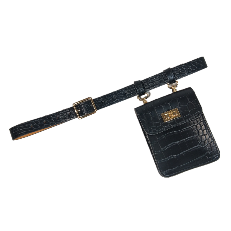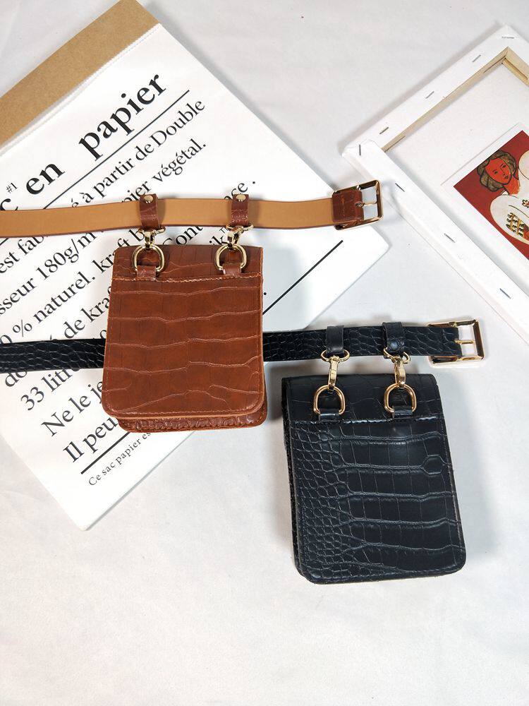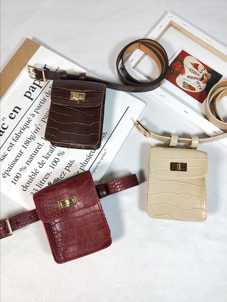 Korean version retro small pocket women's fashion 100 lap net red mini crocodile print small bag to decorate the belt bag Chains