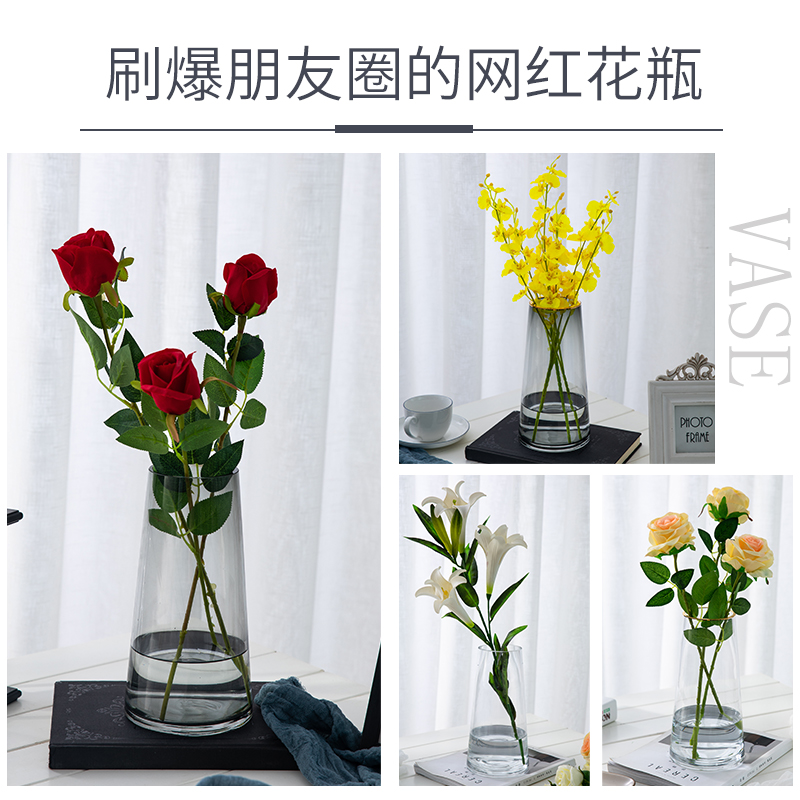 Light extravagant sketch Nordic minimalist vase glass transparent hydropony water bacon flowers lilies dried flower living-room flower arrangement pendulum pieces