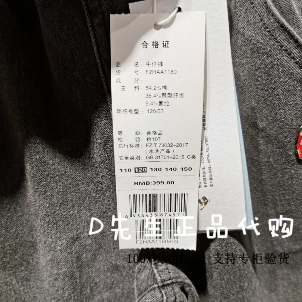 F2HAA1180 mini peace Taiping bird children's clothing 2020 spring new girls mickey jeans 399