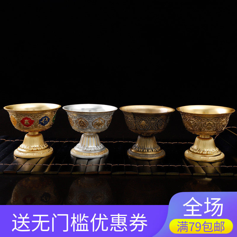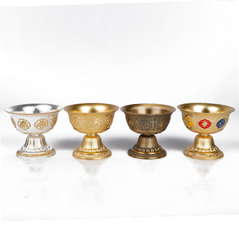 Eight auspicious for a water glass for the Buddha's holy water glass Eight for a bowl carved with auspicious eight precious patterns and a high foot swing for the Holy Water Bowl