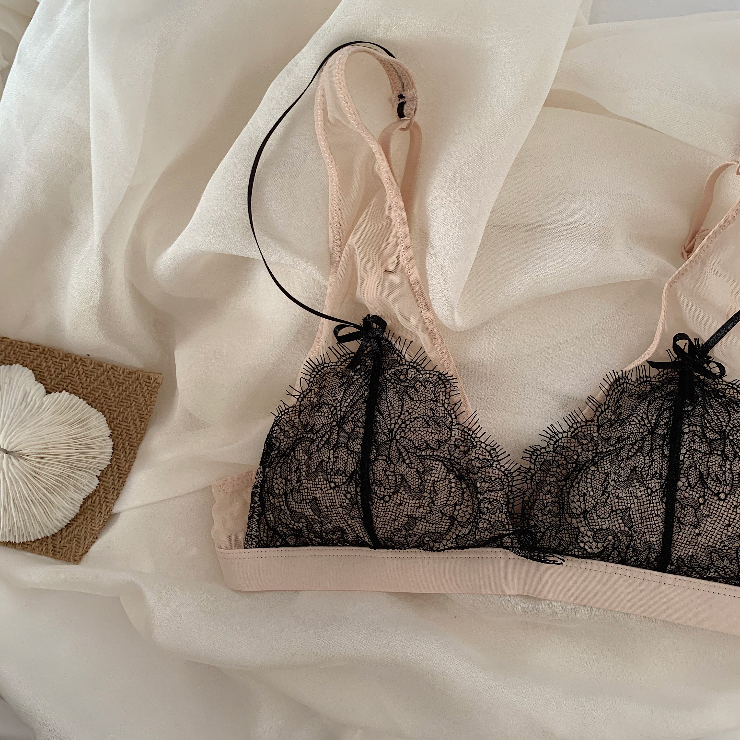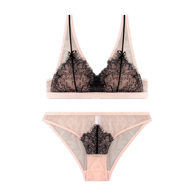 Gentle world French romantic beautiful soft skin no steel ring girl bra set lace mesh stitching