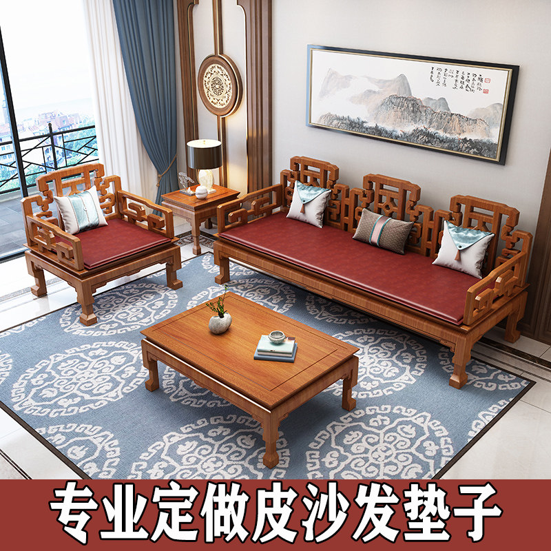 Mahogany sofa cushion Chinese style non-slip sponge cushion thin section solid wood sofa leather cushion combination four seasons