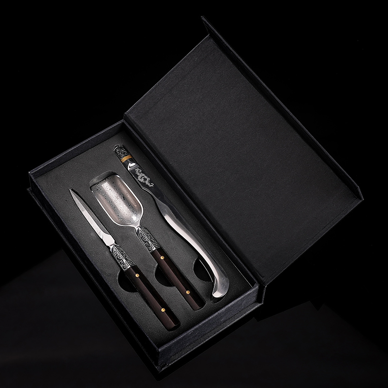 Black Sandalwood Tea Knife Serpent Wood Tea Knife Black Sandalwood Tea Road Accessories Three Sets-Stainless Steel Black Sandalwood Tea Road Accessories Three Sets-Damascus Steel Red Acid Branch Tea Trail accessories Three sets-stainless steel