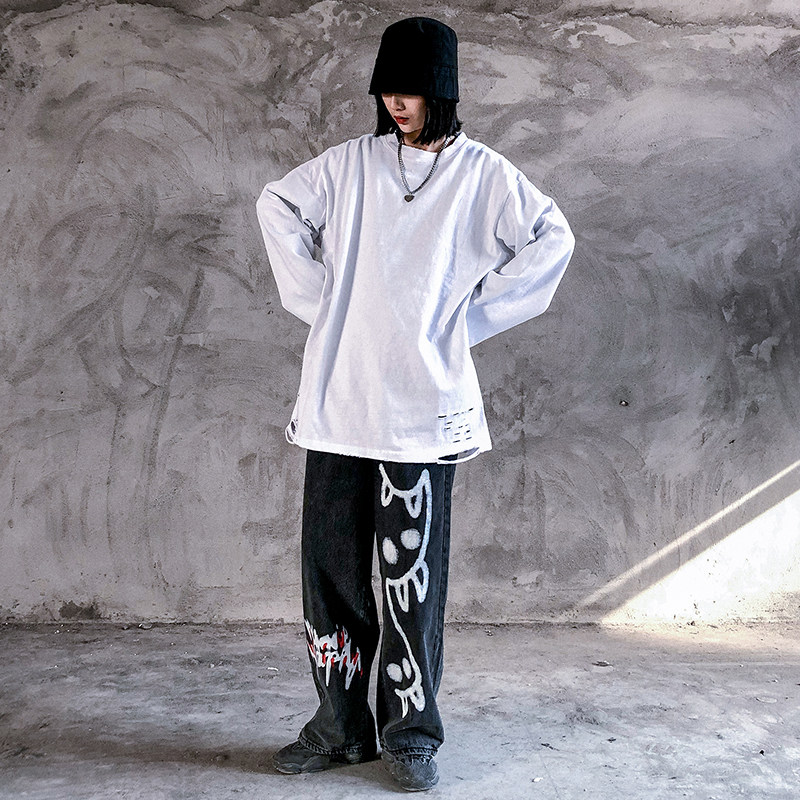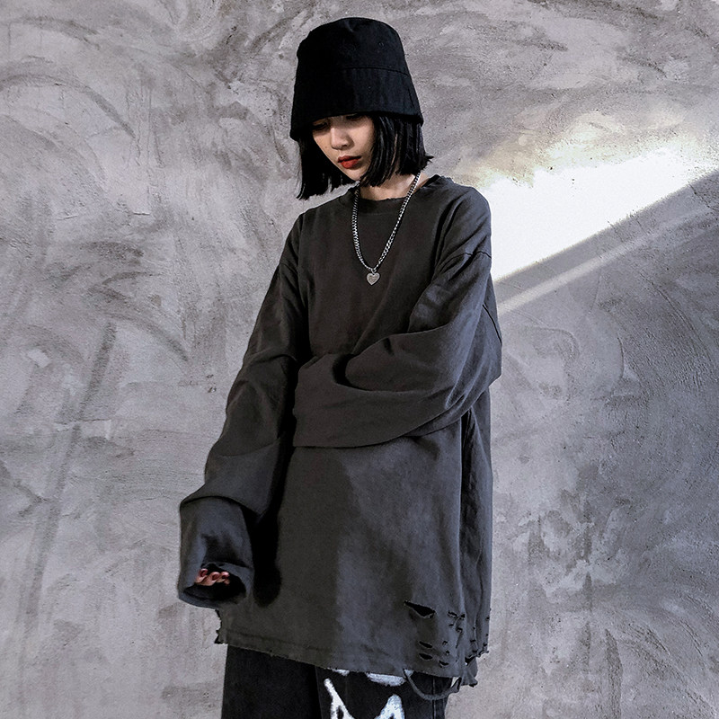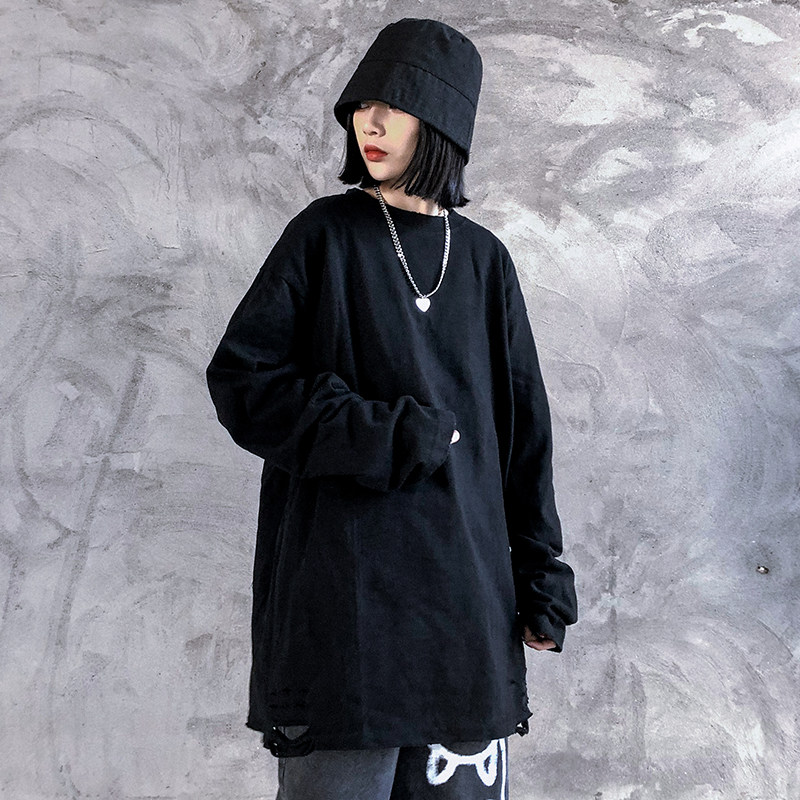 Spring and autumn stacked wear high street hip hop solid color inner jacket Loose hole long-sleeved T-shirt men's and women's ins tide brand