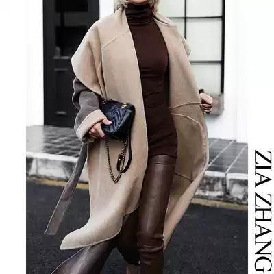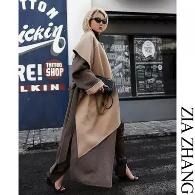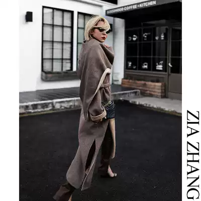Z boss elegant two-color cashmere handmade coat scarf collar loose straight long version double-sided cashmere coat women