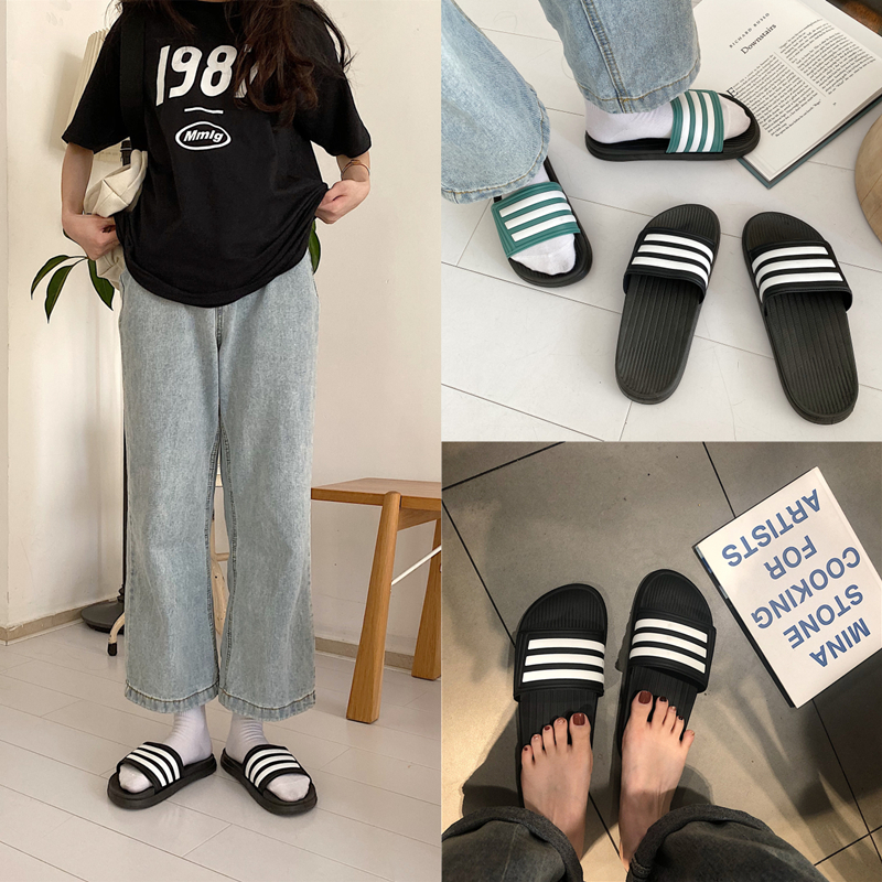 INS Chaogang Wind student 100 Striped Striped lovers outside wearing slippers indoor non-slip soft bottom parent-child sandals men and women