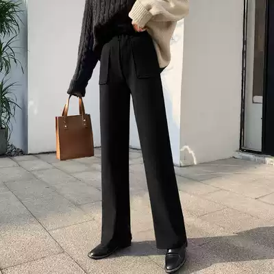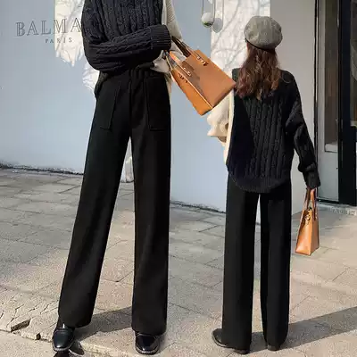 Wide-legged pants women's high-waisted autumn and winter plus velvet thickened woolen pants loose straight casual Joker trousers women