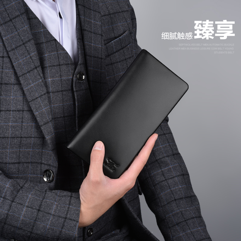 Seven wolves men's long purse head layer genuine leather 2020 new youth student leather clip male leather clip
