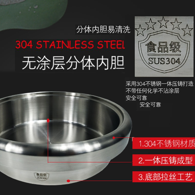 Rongshida food grade 304 stainless steel electric hot pot household plug-in small hot pot quick-cooking pot two-piece electric pot