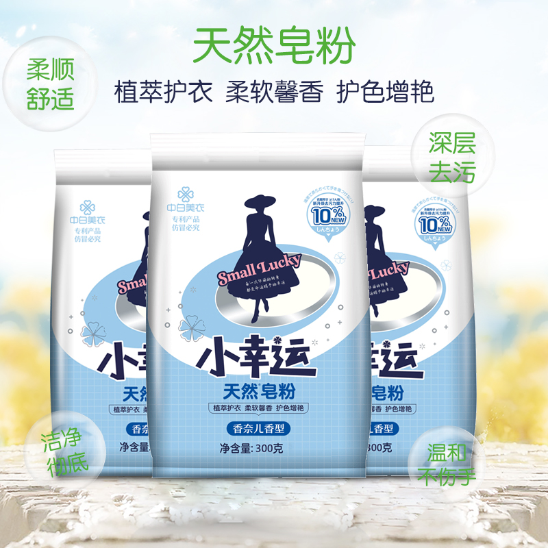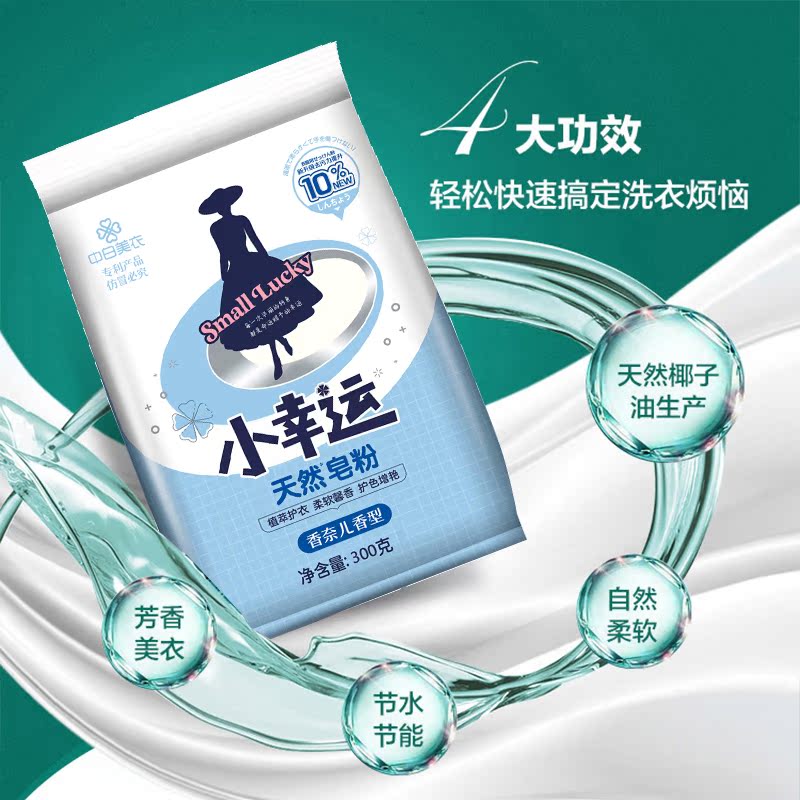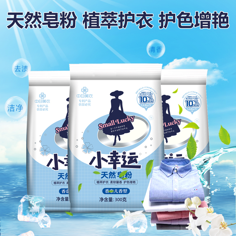 Small lucky laundry soap powder fragrant water taste Remain on campus Students ex-gratia payment 300g High efficiency decontamination easy to drift clear