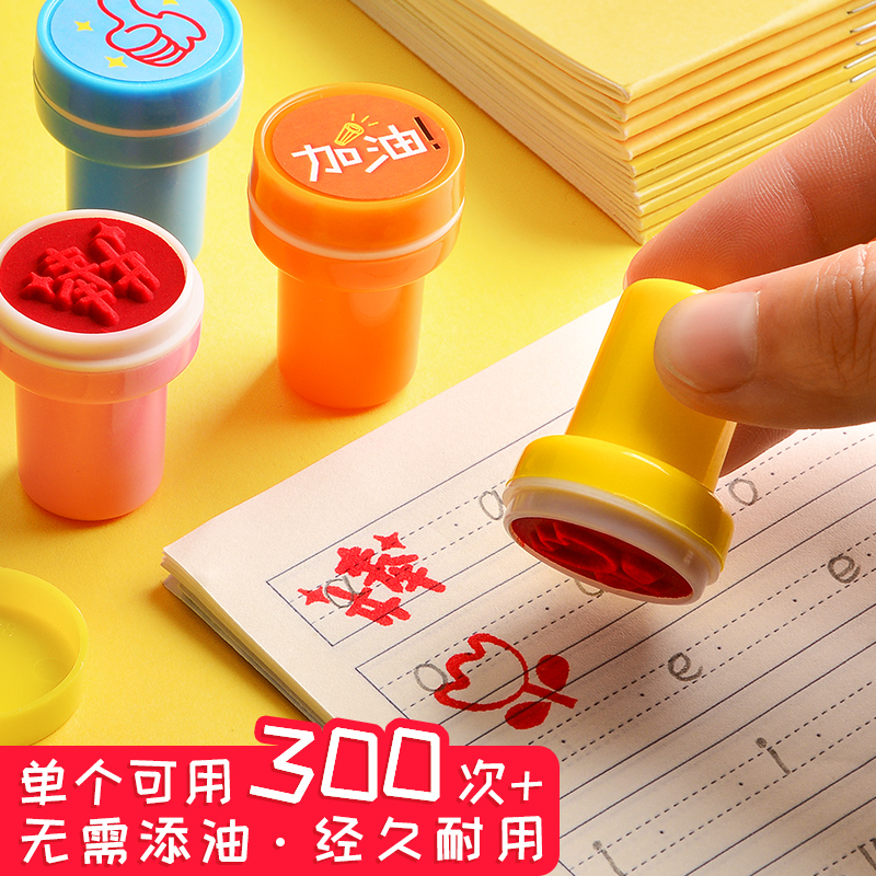 Slow working child seal teacher with cartoon cute elementary school children stamp reward comment small red flower thumb animal pattern You're great for smiling face Kindergarten praise seal card for small stamp
