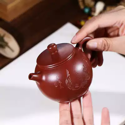 Yixing Purple Clay pot famous Wang Ting handmade raw ore Dahongpao Bao Zun 200cc ball hole home Kung Fu tea set