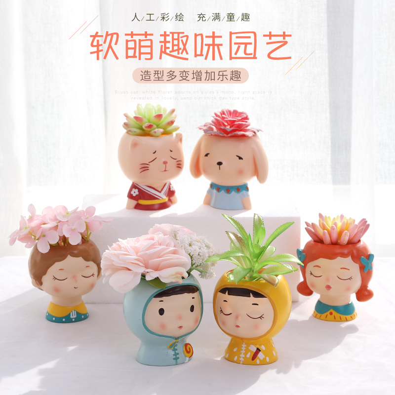 Creative doll flowerpot-butterfly girl creative doll flowerpot-wave point boy creative doll flowerpot-lollipop creative doll flowerpot-yellow raincoat creative doll flowerpot-melancholy rabbit creative doll flowerpot-face