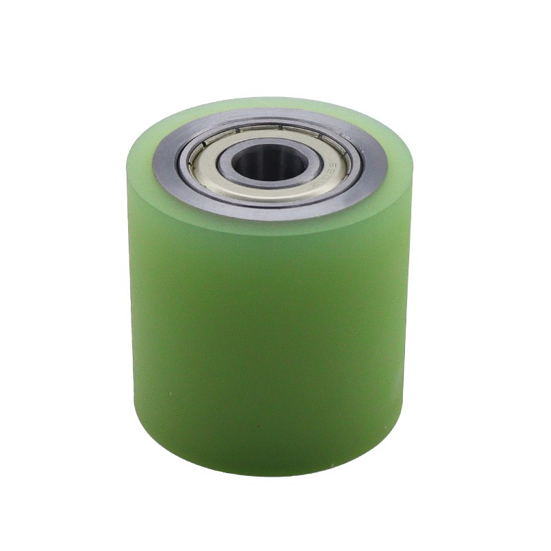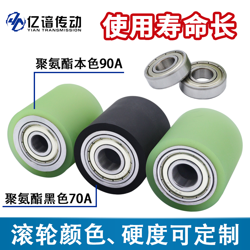 Polyurethane rubber wheel with axis PU rubber roller without dynamic roller with double bearing wear resistant pulley conveying roller