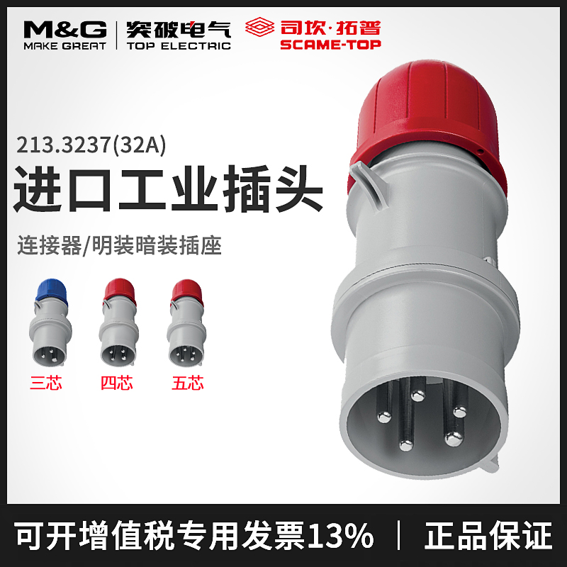 Scantop industrial plug socket 5-core three-phase electric 380v female connector waterproof 32a 313 3247