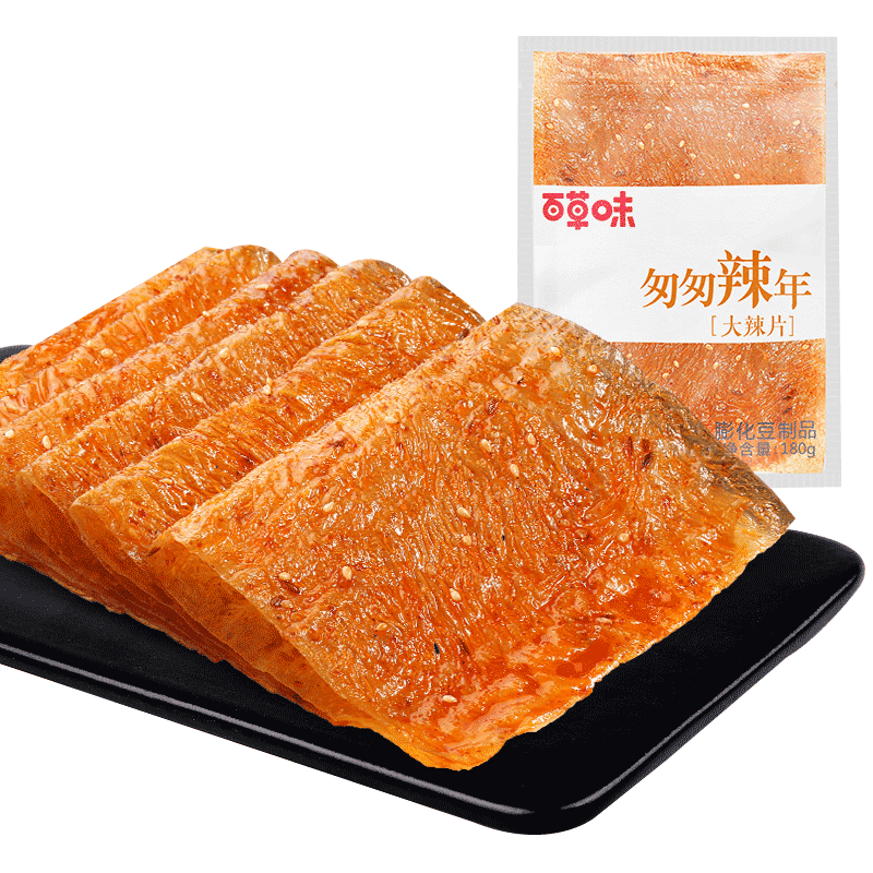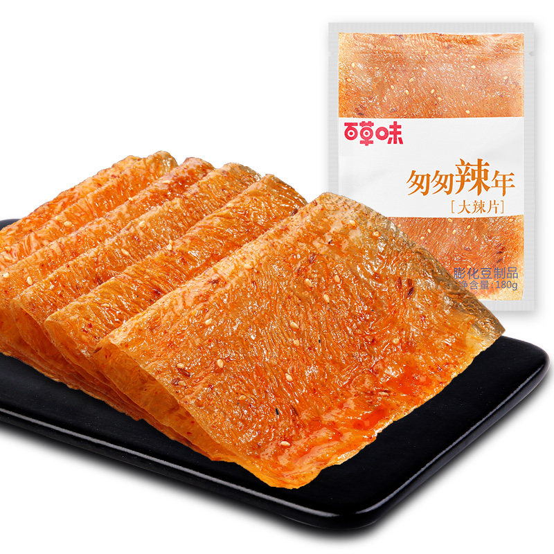 Baicao Spicy Pieces 180G bags of spicy dry tofu spicy flavor old-fashioned bean skin nostalgic snacks for casual snacks