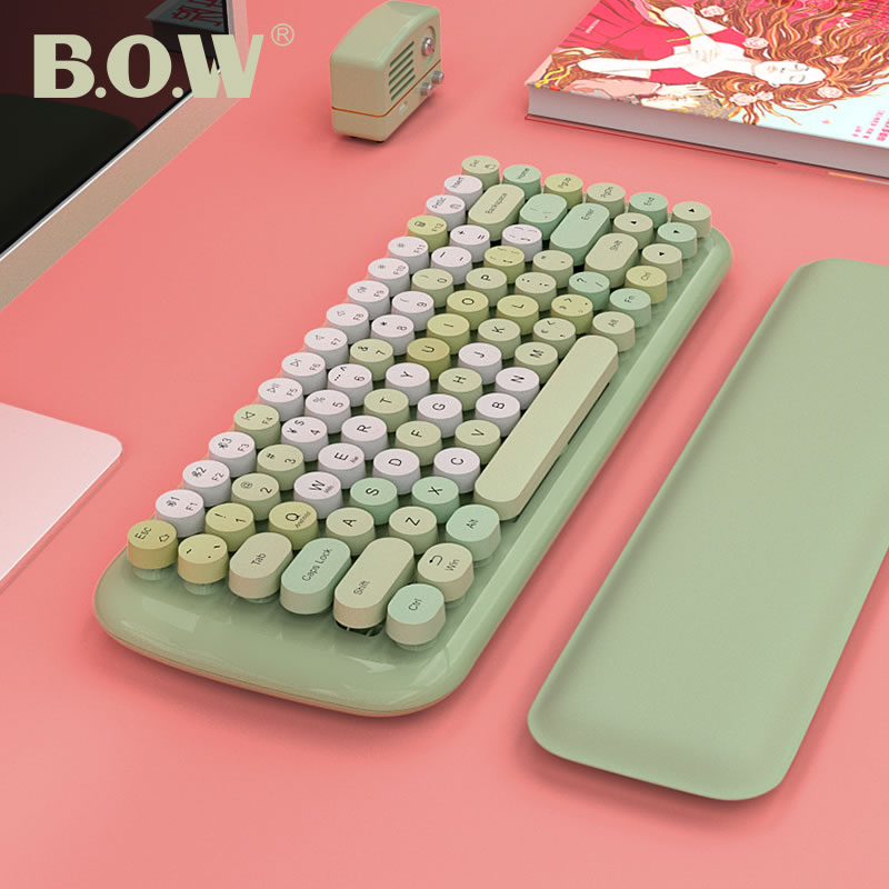BOW Seamouth Red Dots Blue Dot Bluetooth Keyboard Slide Mouse Sets Apply Apple Computer Ipad Tablet Notebook Takeaway Mechanical Hand Wireless Macaroon Color Cute Girl Portable Mini Small