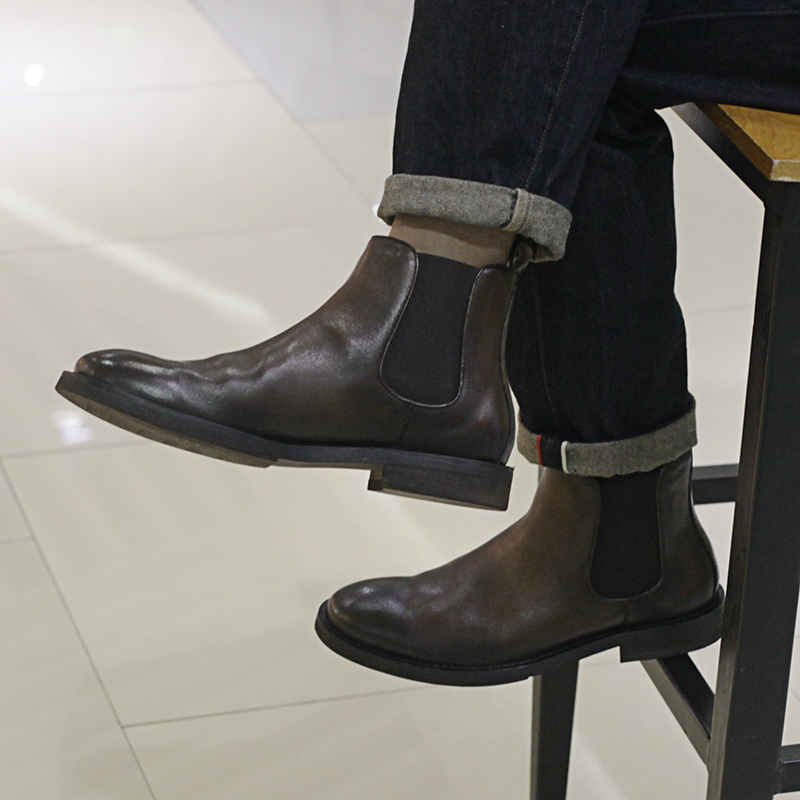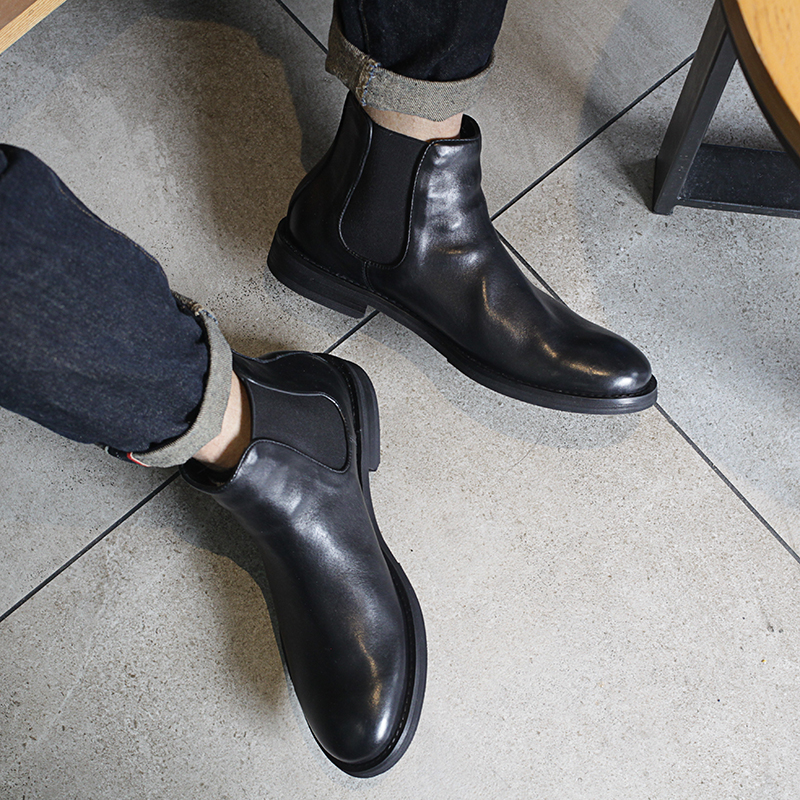 Gas field full opening Inron retro genuine leather Business casual leather boots Men hand made old soft bottom comfortable Chelsea boots