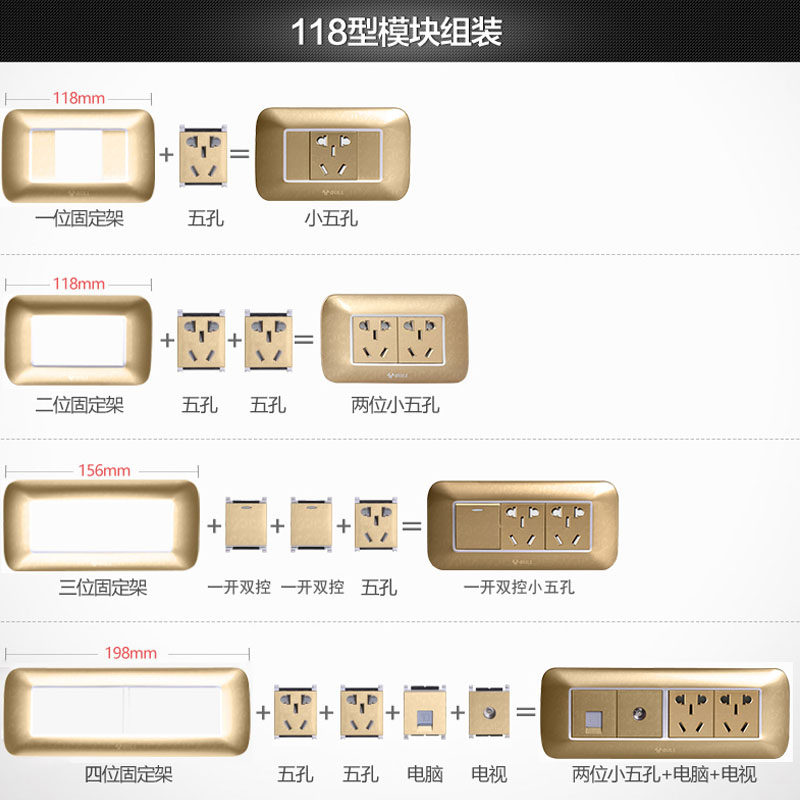 118 Five-hole module Five-hole socket 10-hole one-open five-hole one-open double-cut Two-open double-cut five-hole TV Five-hole computer 2-open five-hole three-open double-cut 15-hole one-open 10-hole Two-open 10-hole computer