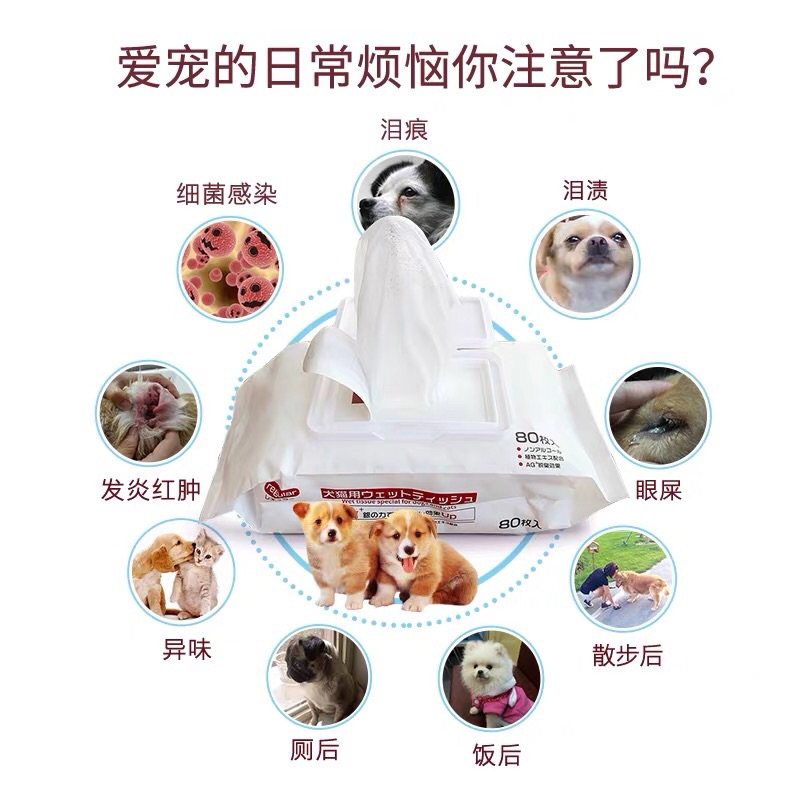 Japan kojima pet wet wipes dogs kitty special no stimulation disinfection to tear marks facial cleaning 80 pumping