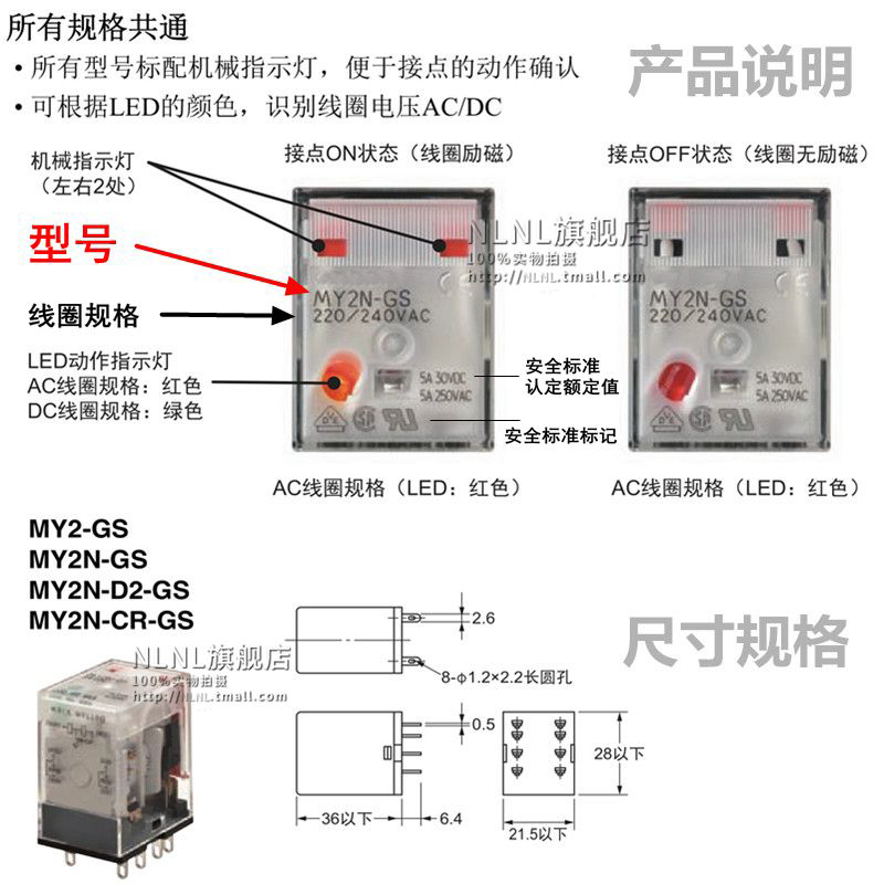 MY2N-GS DC12V MY2N-GS DC24V MY2N-GS DC48V MY2N-GS DC110V MY2
