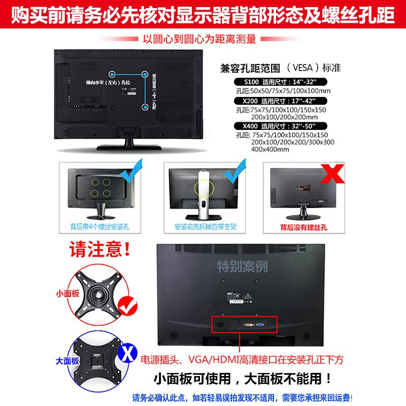 500X horizontal vertical screen (14-27 inch) 2 Hop 1 swivel adjustment S100 horizontal vertical screen (14-27 inch) swivel adjustment telescopic X200 (17-32 inch)