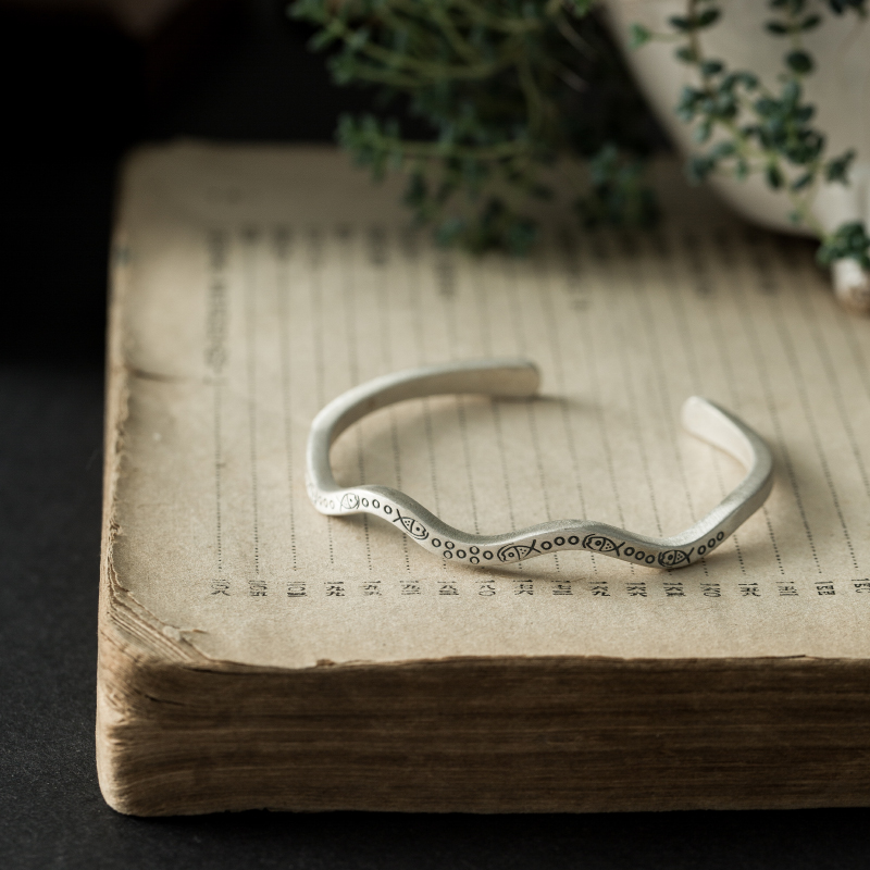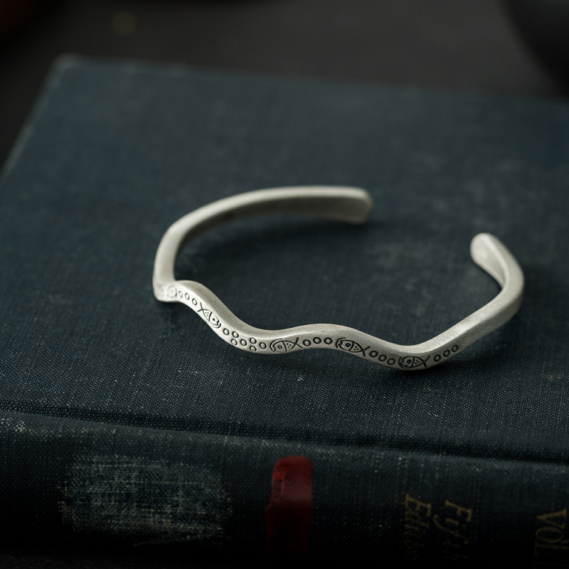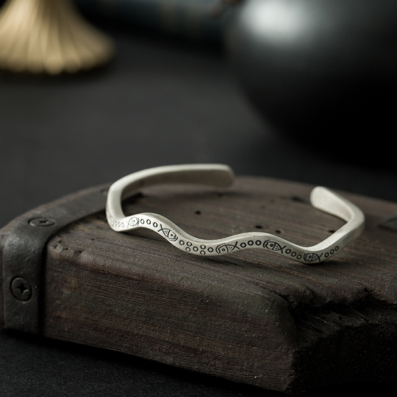 Fish Shallow Singing Water Ripple Small Fish 925 Sterling Silver Opening Adjustable Bracelet