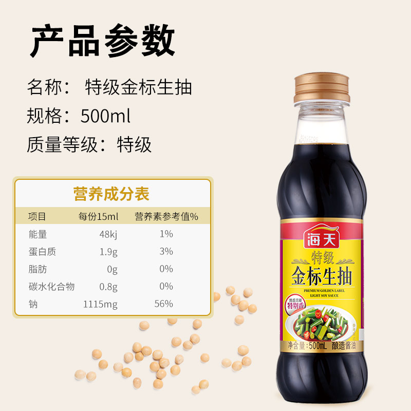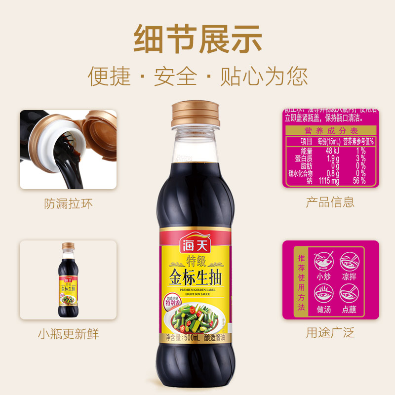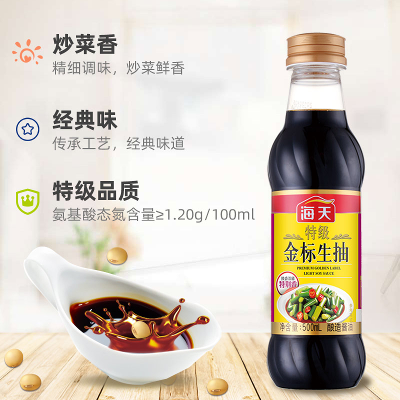 Haitian premium gold standard soy sauce 500ml x 12 bottles brewed soy sauce stir-fry cold vegetables fresh condiments